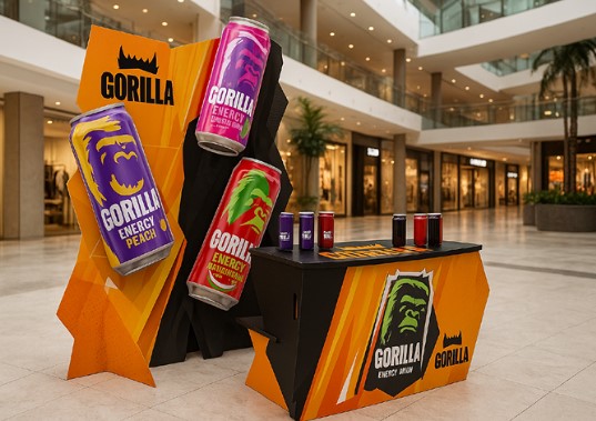 Информационная конструкция креативной формы – альтернатива традиционным стойкам. Привлекает внимание и усиливает коммуникацию бренда.