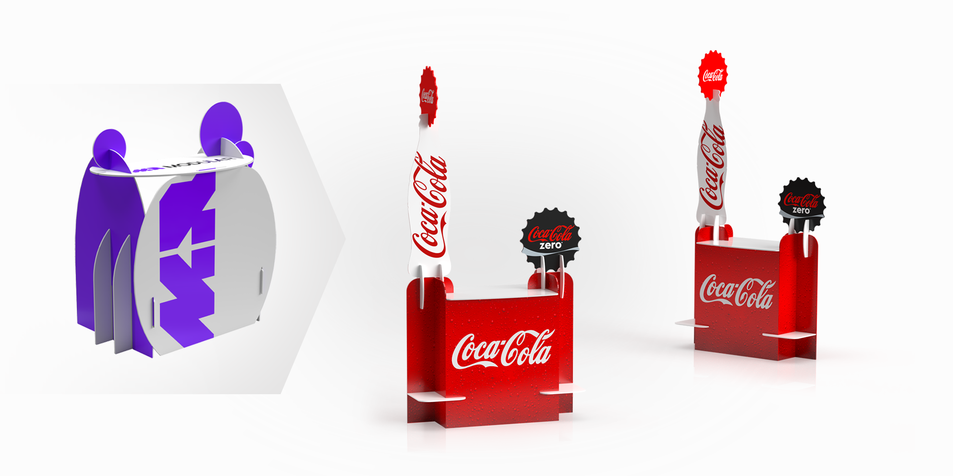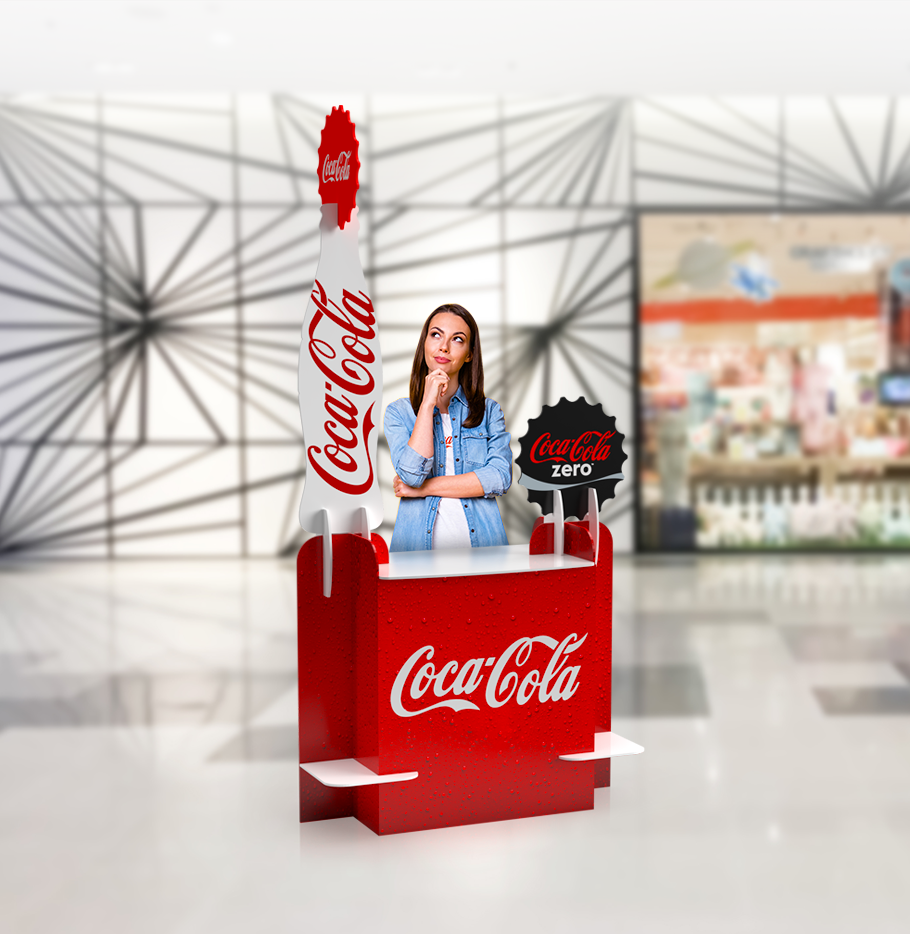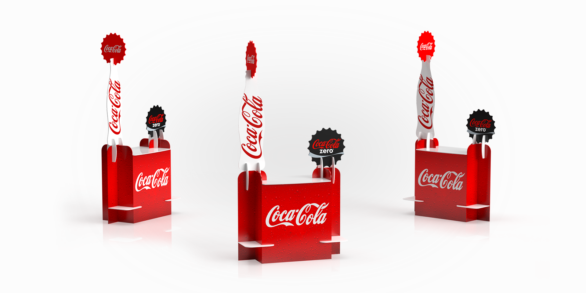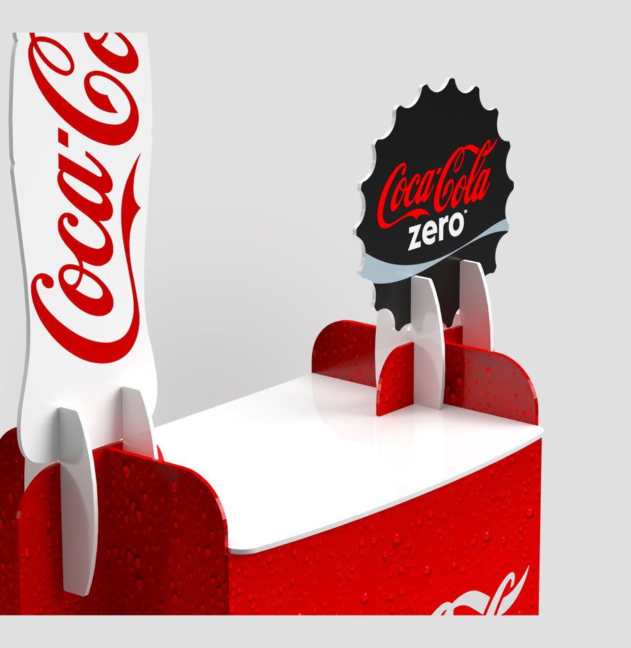 Это концепт-дизайн MR.DESK для Coca-Cola. Промо-стол может выглядеть интересно и креативно, с объемными выступающими элементами, которые подчеркивают характер бренда.