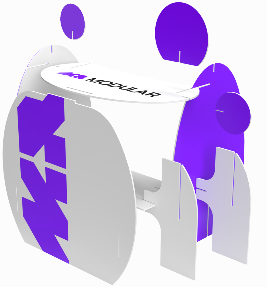 MR. DESK – это универсальный инструмент, который помогает быстро организовать точку контакта с потребителем и выделиться на фоне конкурентов. А если добавить к нему другие модуляры, вы легко сможете развернуть целую бренд-зону.